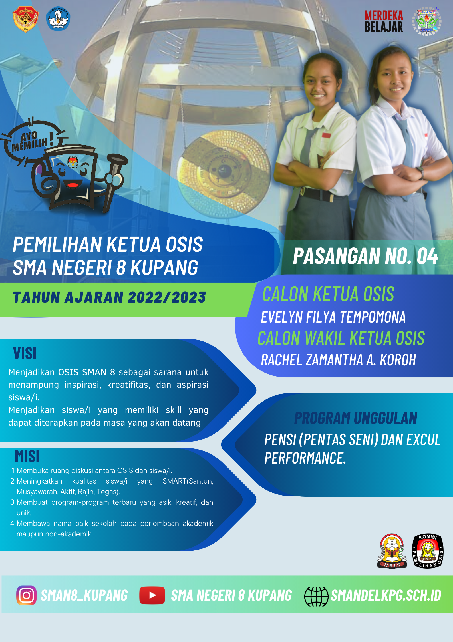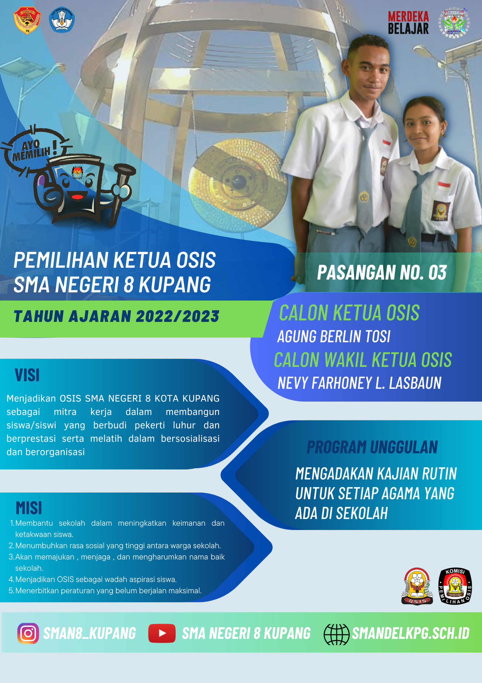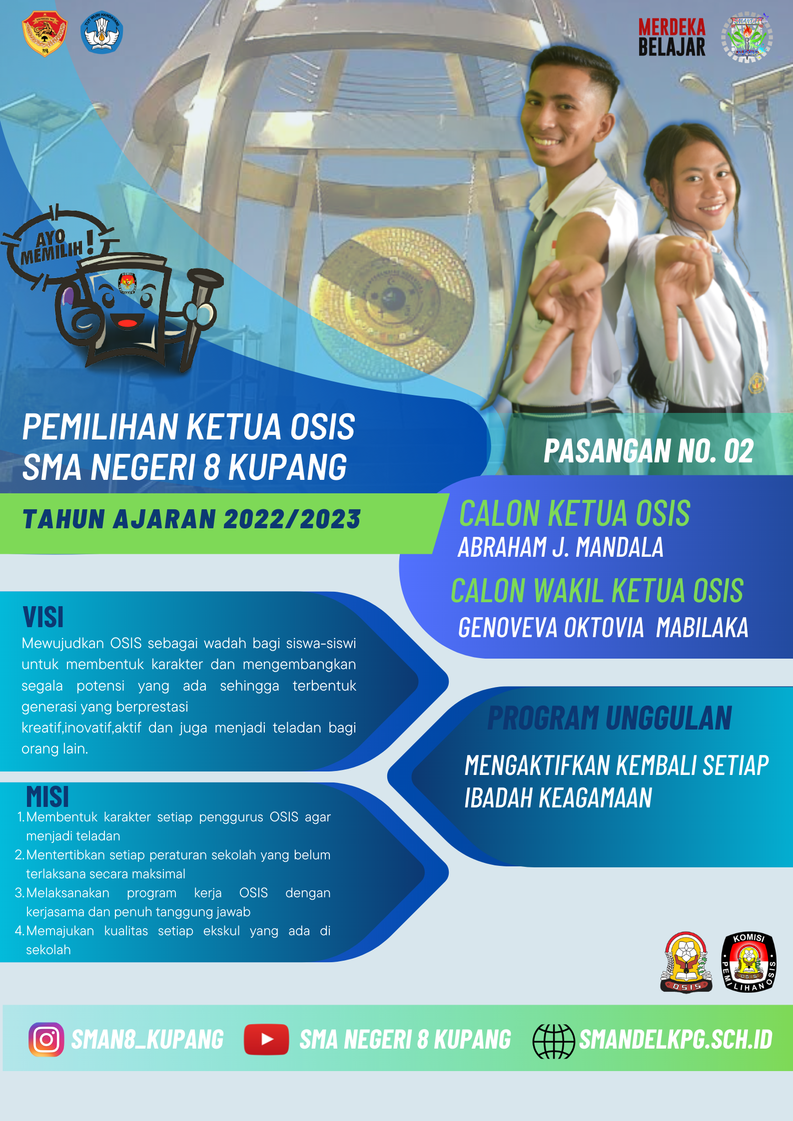 Adapun pasangan calon Ketua dan Wakil ketua OSIS SMA Negeri 8 Kupang adalah Sebagai berikut: